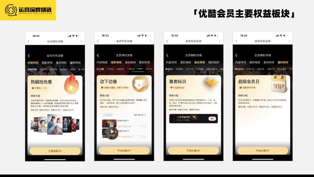 這期我們將以愛奇藝、騰訊視頻、優(yōu)酷、芒果TV為例,從拆解視角盤點視頻網(wǎng)站會員體系的構(gòu)建。