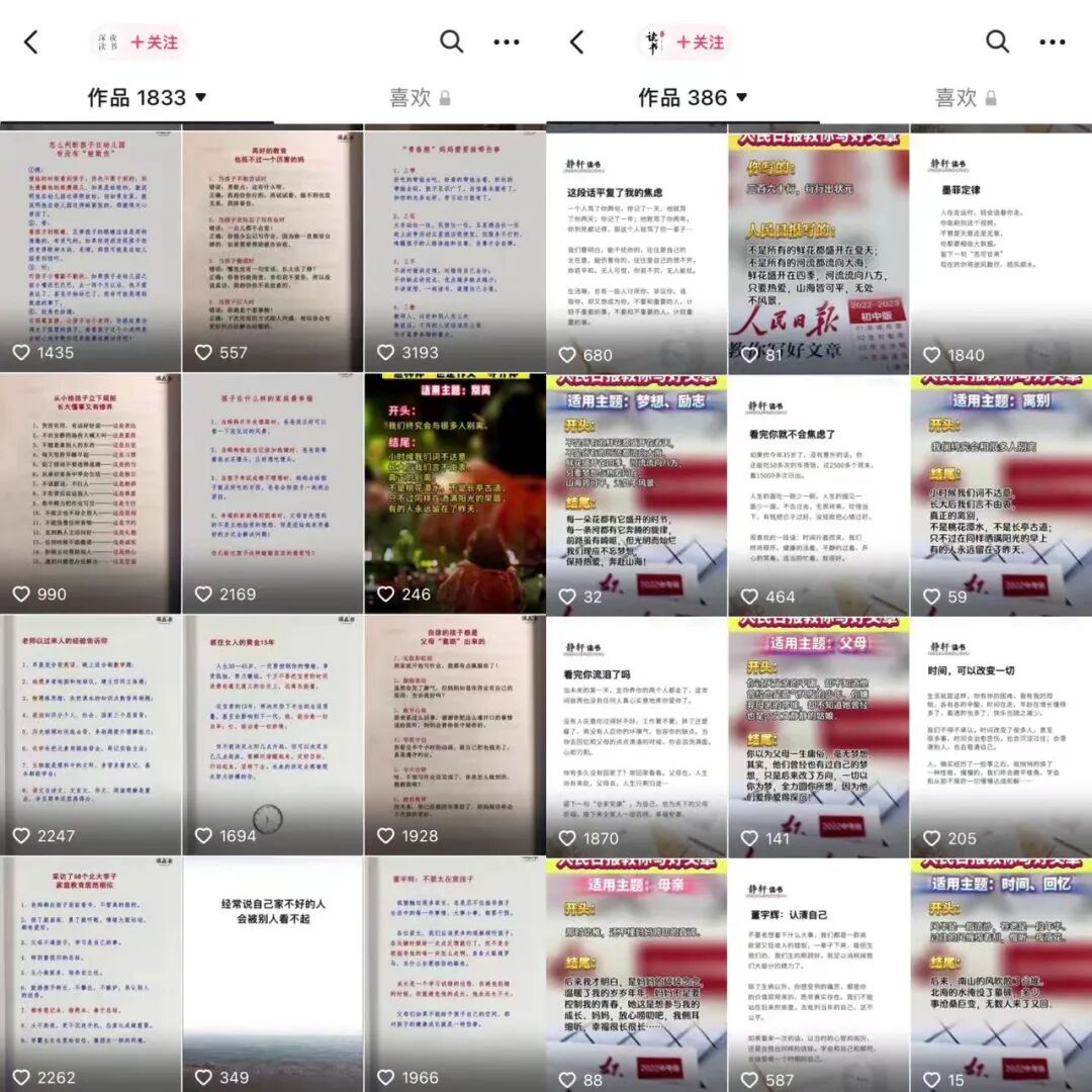抖音上經常能夠刷到各種分享圖書語錄的賬號,有直接讀的,有直接截圖的,有摘抄經典名句的等。