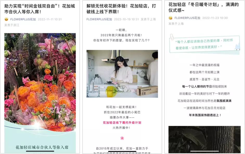 第三,跟用戶強調公司經(jīng)營的穩(wěn)定性。花加公眾號上會定期更新有關公司的經(jīng)營動態(tài),加強用戶對公司的信心。