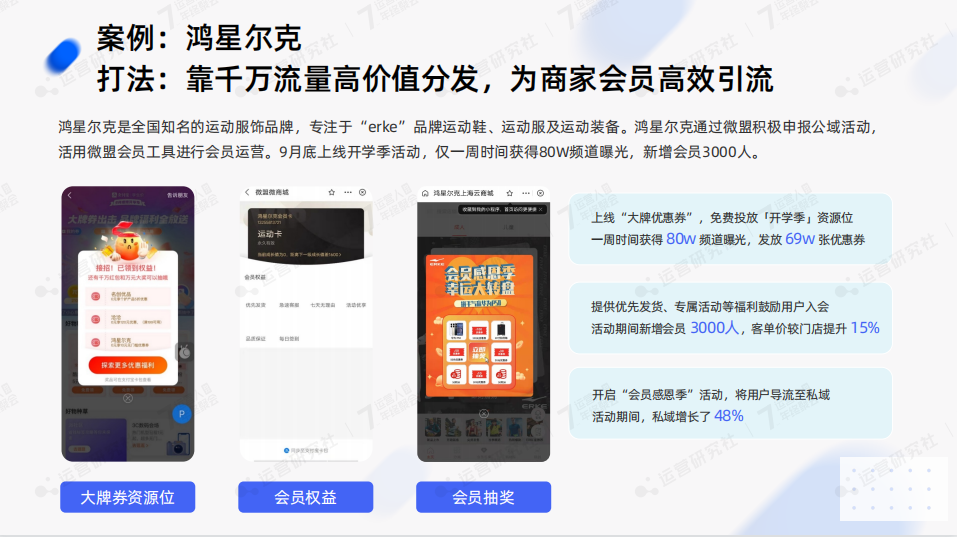 數(shù)據(jù)顯示,鴻星爾克在一周內(nèi)獲得了超過 80 萬的曝光量,發(fā)放 69 萬張優(yōu)惠券,整個活動期間新增會員超過 3000 人,其客單價也比線下門店提升 15%。