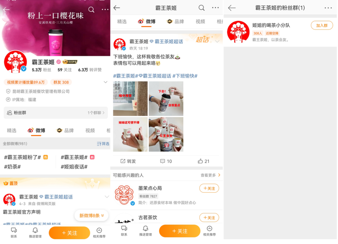 另外,霸王茶姬也在微博建立粉絲群,很好的把每個平臺的粉絲都聚集起來維護。