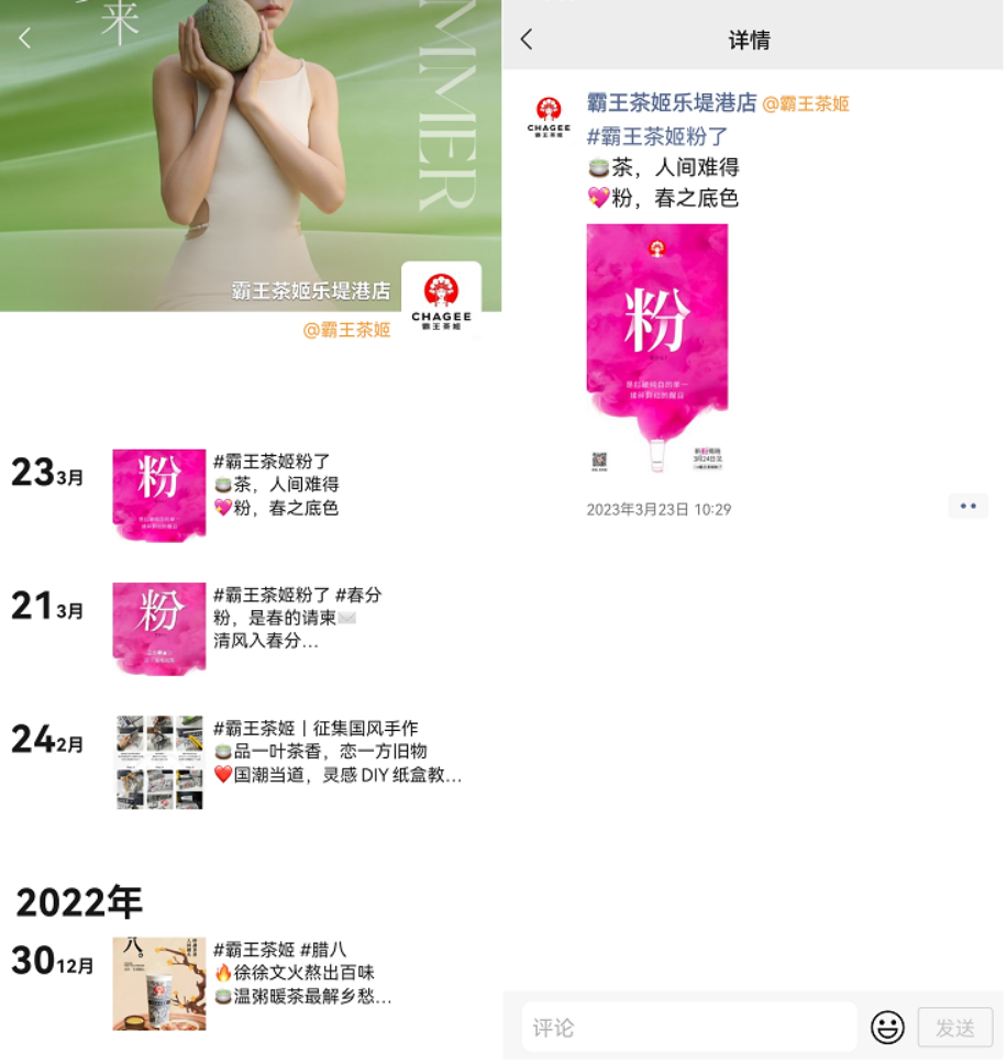 3)私域運營:不管是朋友圈還是社群,霸王茶姬發(fā)布的內(nèi)容較少,缺少互動,用戶粘性有待提高。