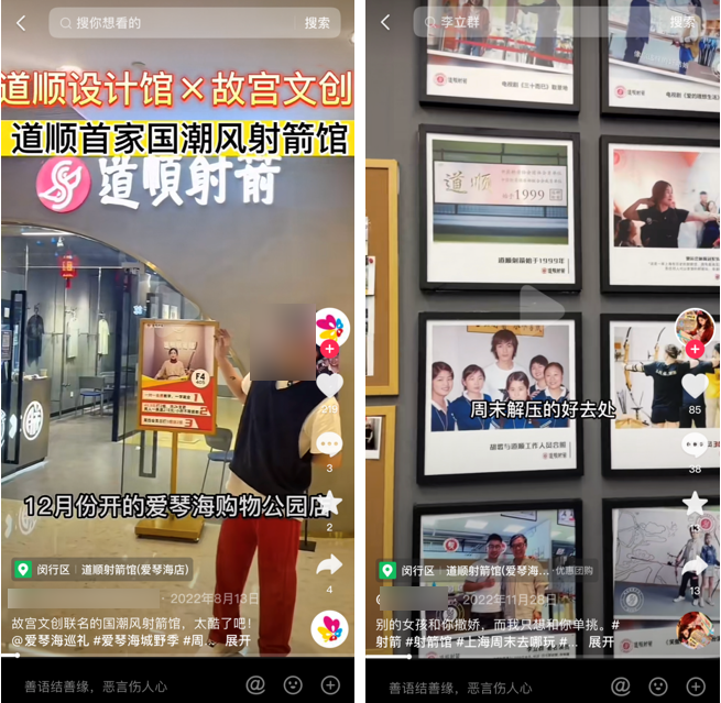 “我們會給達(dá)人們制定統(tǒng)一的拍攝主題,指明需要突出哪些賣點。比如強(qiáng)調(diào)道順射箭館是魔都網(wǎng)紅射箭館,可以體驗國潮文化,是個很好的社交第三空間......”
