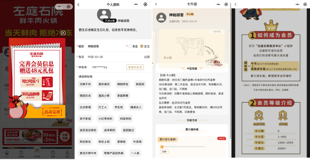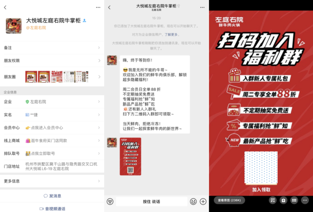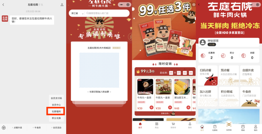以潮汕牛肉火鍋品牌左庭右院為例。借助數(shù)字化賦能,在會員營銷、私域運營等方面都取得了不錯的成績。
