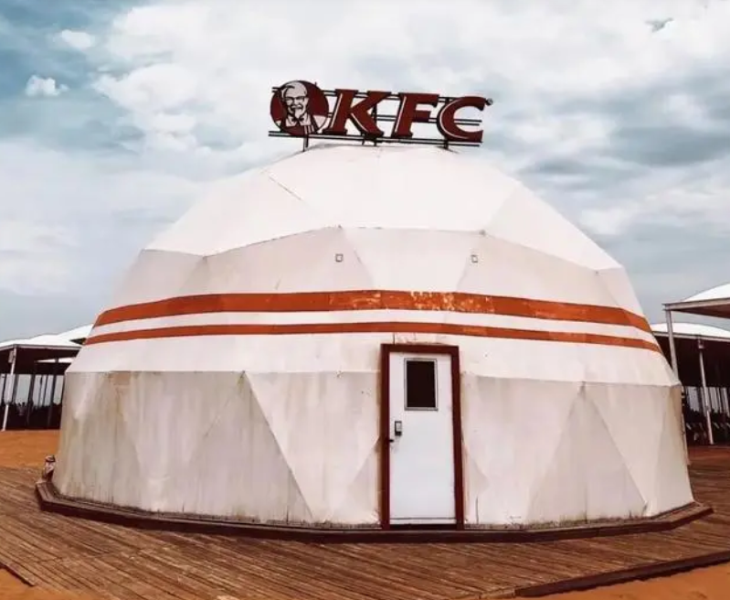 在內(nèi)蒙古,有“蒙古風(fēng)”的肯德基店,藍(lán)天白云下,蒙古包立于沙漠之中,看起來毫不違和;