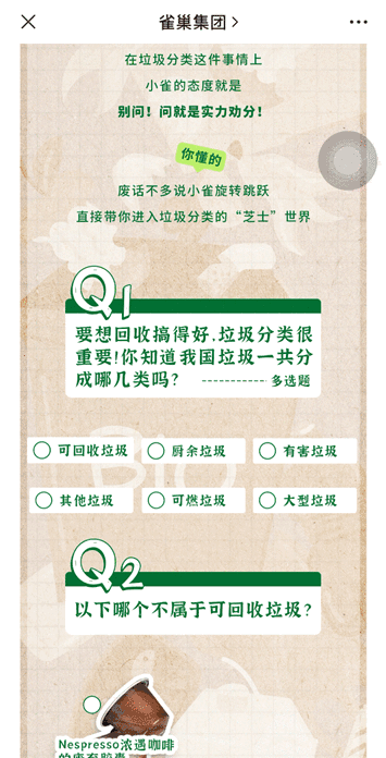 這篇文章是環(huán)??破罩黝}的內(nèi)容,以往這類文章多是以純文字內(nèi)容進行科普,或者是圖片海報,但往往這種形式,大家在看過后遺忘速度會很快,但如果文章中做這類選擇題形式的科普,有助于讓大家在互動的過程中,加深印象。