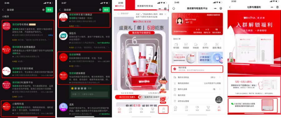 薇諾娜建立了以微信平臺為核心的私域矩陣,另外在抖音、小紅書、微博等平臺都設(shè)置了一定的引流觸點。