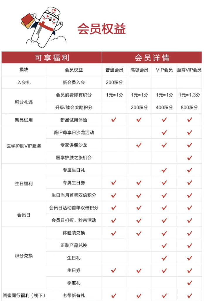 3)會員體系待完善:薇諾娜的會員體系為會員設(shè)置了較多的權(quán)益,但不足之處是私域缺乏聯(lián)動,會員體系僅在小程序上有體現(xiàn),公眾號、社群沒有做相應(yīng)的介紹。