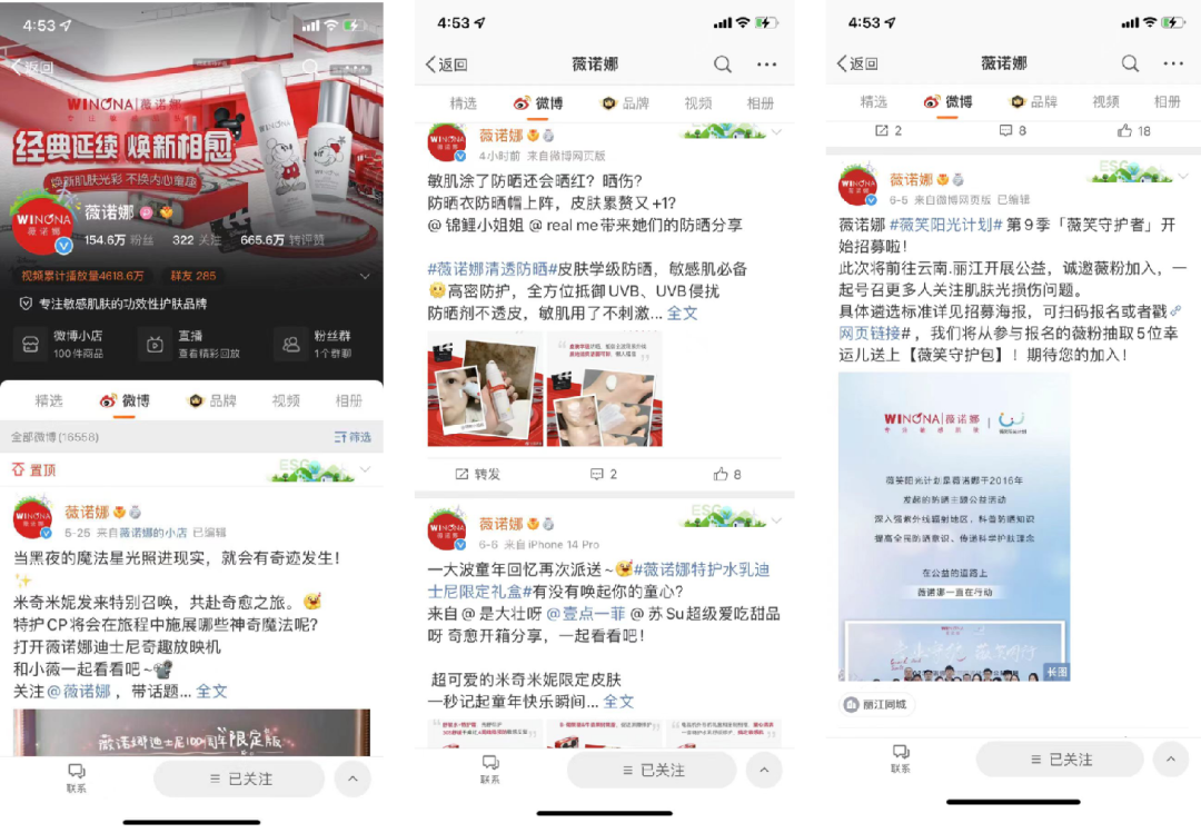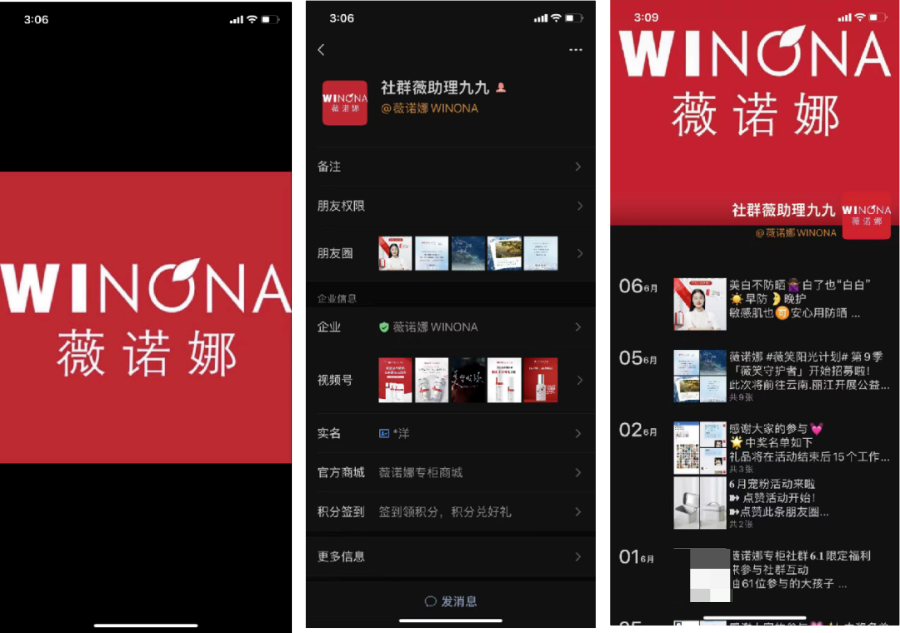 薇諾娜的企業(yè)IP較傳統(tǒng),員工統(tǒng)一以公司logo作頭像,企業(yè)IP的角色以品牌宣傳、發(fā)放福利、活動預報為主。