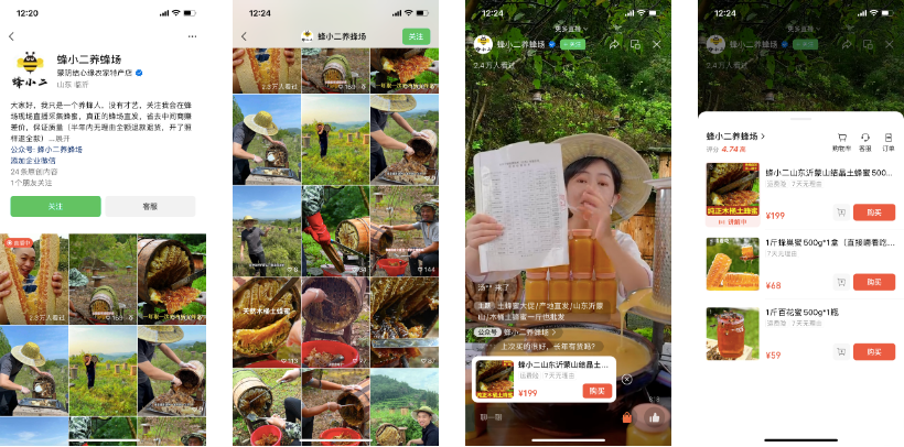 去年,三農(nóng)類達(dá)人蜂小二養(yǎng)蜂場在直播中,創(chuàng)造出了單場GMV及場觀雙雙破100萬的優(yōu)異戰(zhàn)績,不到四個月的時間,蜂小二養(yǎng)蜂場就迅速成長為視頻號三農(nóng)類賽道的標(biāo)桿賬號。