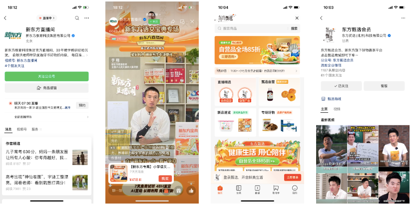 過去,作為直播界的“頂流”,東方甄選除了抖音之外的下一站一直是大家比較關(guān)注的,各平臺也是摩拳擦掌搶頭部達(dá)人和商家入駐。在入駐抖音的同時,東方甄選就開設(shè)“東方甄選官方號”、“東方甄選會員”的微信公眾號和視頻號。