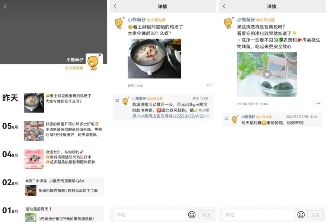例如小熊電器,早早地建立了自己的私域流量池,通過用戶互動(dòng)和社群營銷,成功地將品牌打造成了“頂流”的小家電品牌。