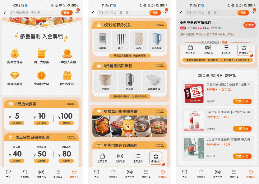 小熊電器還在天貓?jiān)O(shè)置了會(huì)員體系。主要以成長值會(huì)員+積分體系為主。下面以天貓平臺(tái)的會(huì)員體系為例。