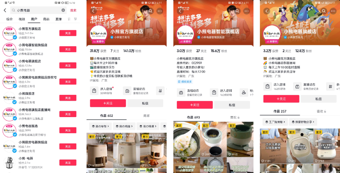 小熊電器在快手主要有1個(gè)賬號(hào)【小熊電器官方旗艦店】,粉絲5.6w,主要視頻內(nèi)容是以制作美食形式展示產(chǎn)品;
