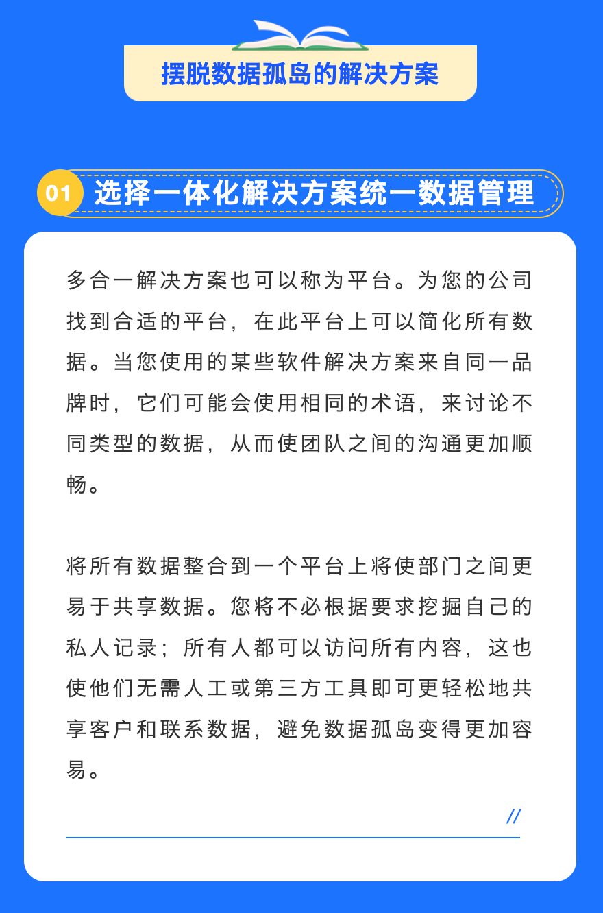 “企業(yè)發(fā)展到一定階段,出現(xiàn)多個(gè)事業(yè)部,每個(gè)事業(yè)部都有各自數(shù)據(jù),事業(yè)部之間的數(shù)據(jù)往往都各自存儲(chǔ)、各自定義。每個(gè)事業(yè)部的數(shù)據(jù)就像一個(gè)個(gè)孤島一樣無法/或者極其困難和企業(yè)內(nèi)部的其他數(shù)據(jù)進(jìn)行連接互動(dòng)?!蔽覀儼堰@樣的情況稱為數(shù)據(jù)孤島。簡(jiǎn)單說就是數(shù)據(jù)間缺乏關(guān)聯(lián)性,數(shù)據(jù)庫(kù)彼此無法兼容。
