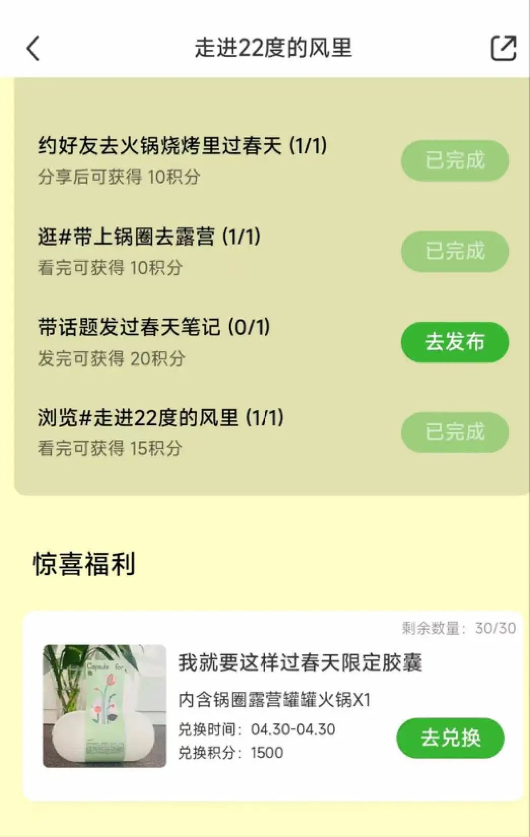 然后再通過活動(dòng)頁,用小禮物刺激用戶“跟風(fēng)”發(fā)筆記,最后形成可沉淀的種草向 UGC。