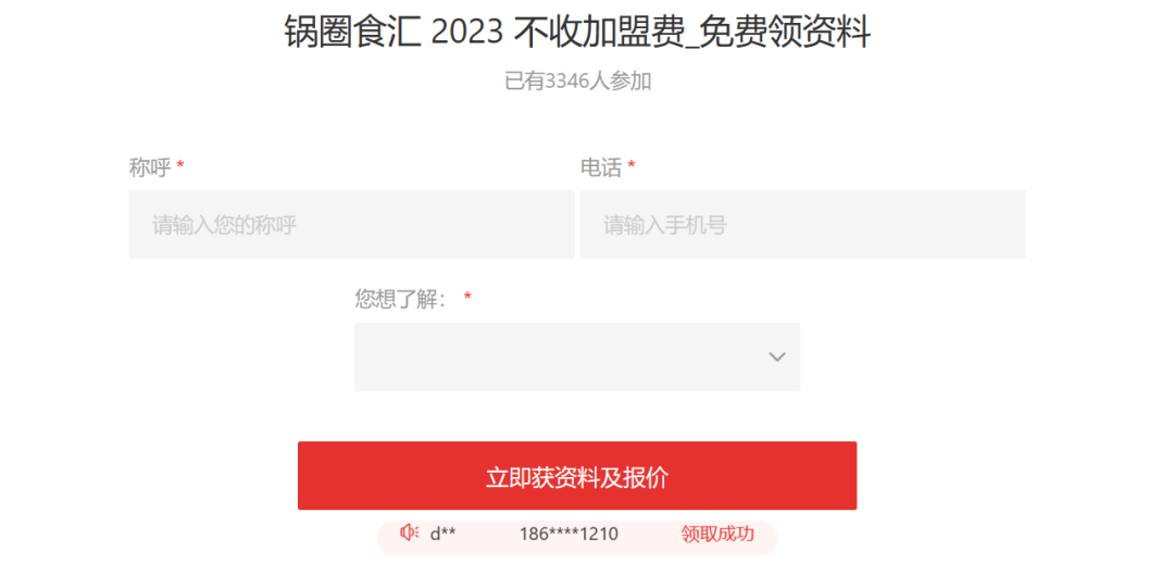 鍋圈把宣傳重點(diǎn)放在“不收加盟費(fèi)”上。點(diǎn)開鍋圈官網(wǎng),可以很醒目地看到“不收加盟費(fèi)”的字樣。