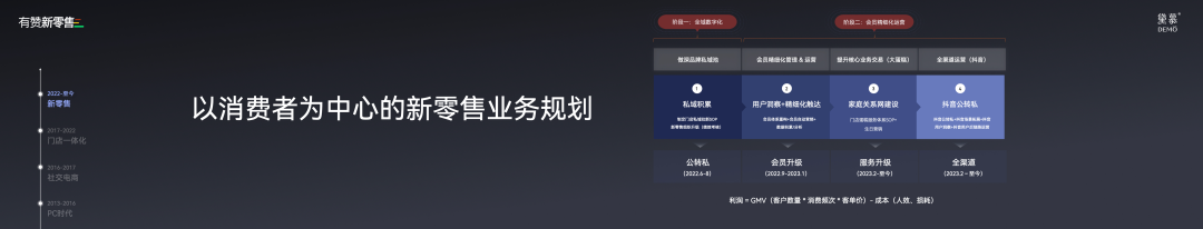 在每個(gè)地方每次觸達(dá),要么做內(nèi)容、品牌的宣講,要么在做營(yíng)銷和交易的轉(zhuǎn)化,最終目標(biāo)是提高單用戶的全生命周期的價(jià)值。