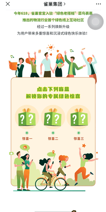 這篇文章同樣用到了圖片彈窗SVG,文章內(nèi)容圍繞低碳環(huán)保主題展開,講解了雀巢與菜鳥裹裹的合作項目,通過拆盲盒的形式,讓用戶通過點擊盲盒來了解具體的合作事項。原本枯燥的文字介紹內(nèi)容,以圖片形式展示,讓整體顯得生動有趣。