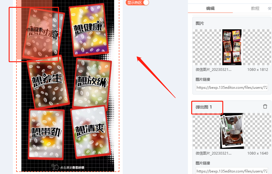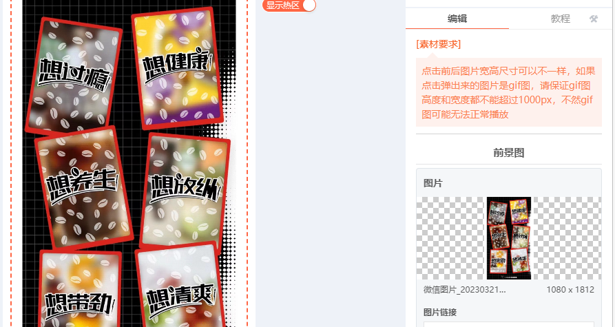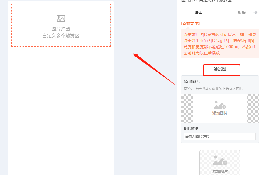 ② 準備好需要彈出的圖片,大家可以根據(jù)自己前景圖來設(shè)置。將彈出的圖片添加進去。每添加一張彈出圖片,就要為其設(shè)置控制熱區(qū)。