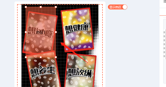 ③ 拖拽紅色虛線部分調(diào)整控制區(qū)域的范圍,移動熱區(qū)到你需要用戶點擊的位置。