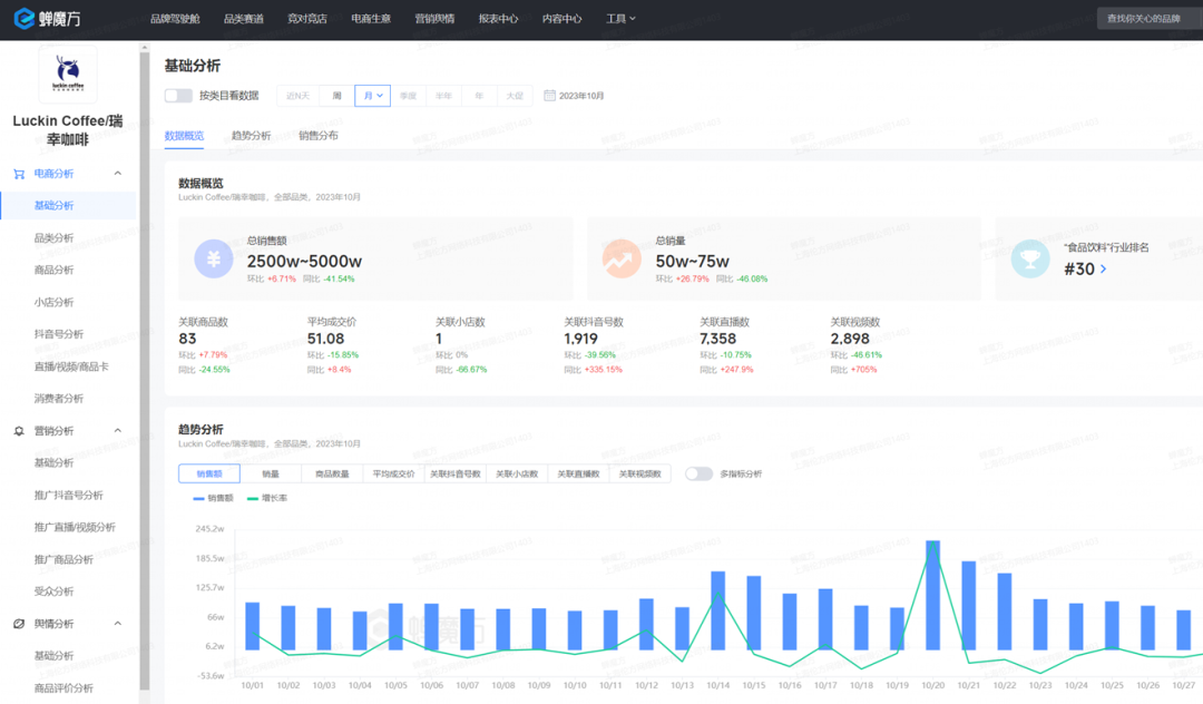 蟬魔方、蟬媽媽這兩款數(shù)據(jù)洞察工具,正是圍繞抖音平臺(tái)實(shí)現(xiàn)上述功能,幫助品牌了解自己、競(jìng)品和消費(fèi)者。從而能夠快速感知市場(chǎng)變化,有效制定數(shù)字化經(jīng)營(yíng)策略 - 這也是本文中分析瑞幸營(yíng)銷(xiāo)策略所用到的同款工具。