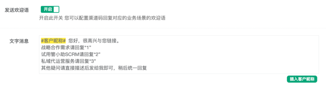 推薦你使用管小助SCRM“渠道碼”功能,不僅能實(shí)現(xiàn)全渠道追蹤、自動(dòng)分流加好友,還可以自動(dòng)打標(biāo)簽、制定個(gè)性化歡迎語(yǔ)自動(dòng)回復(fù)等;一次操作,渠道二維碼永久有效,便于企業(yè)了解客戶來(lái)源情況,分析各渠道質(zhì)量,降低后續(xù)營(yíng)銷獲客成本。涵蓋渠道推廣、客服值班、活動(dòng)推廣、物料宣傳等多種使用場(chǎng)景。