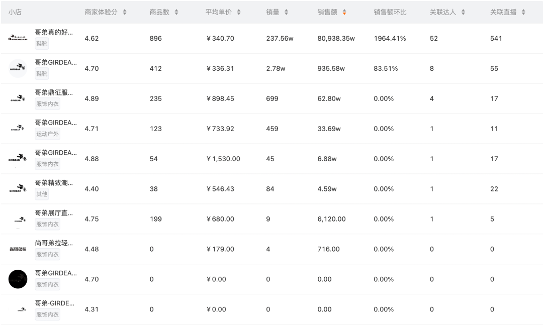 既然衣食住行里“衣”字當(dāng)頭,那么在傳統(tǒng)消費(fèi)中服飾行業(yè)自然規(guī)模小不了,如今直播帶貨業(yè)態(tài)發(fā)展得如火如荼,傳統(tǒng)服飾品牌也不敢懈怠,紛紛求新求變,積極跟進(jìn)新渠道,學(xué)習(xí)新方法,絕不甘人后。從兔展-視頻號精靈的實(shí)時(shí)數(shù)據(jù)中,我們發(fā)現(xiàn),哥弟在服飾類的視頻號商家中名列前茅,無論是合作達(dá)人、直播間數(shù)量、直播時(shí)長,還是成交量、成交額,都有很不錯(cuò)的表現(xiàn)。