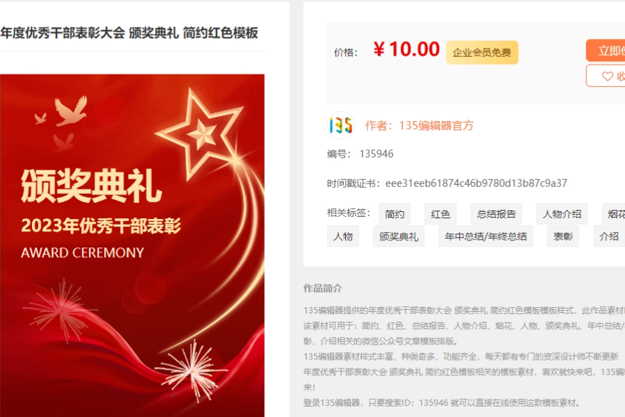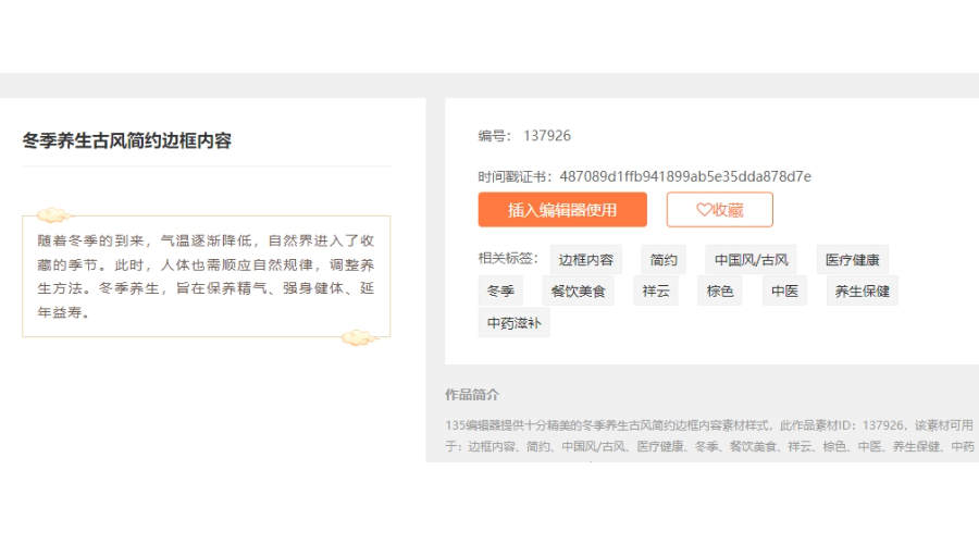 135編輯器作為國(guó)內(nèi)首批專注于數(shù)字內(nèi)容生產(chǎn)工具領(lǐng)域的SaaS公司之一,一直致力于推動(dòng)互聯(lián)網(wǎng)與數(shù)字內(nèi)容的深度融合,目前超過(guò)50w+的素材資源提供給千萬(wàn)用戶使用,持續(xù)推進(jìn)素材版權(quán)使用,為進(jìn)一步確保素材版權(quán)免除用戶后顧之憂,135編輯器x聯(lián)合信任時(shí)間戳確保每一個(gè)素材可追溯、可查詢、可信存證能力。