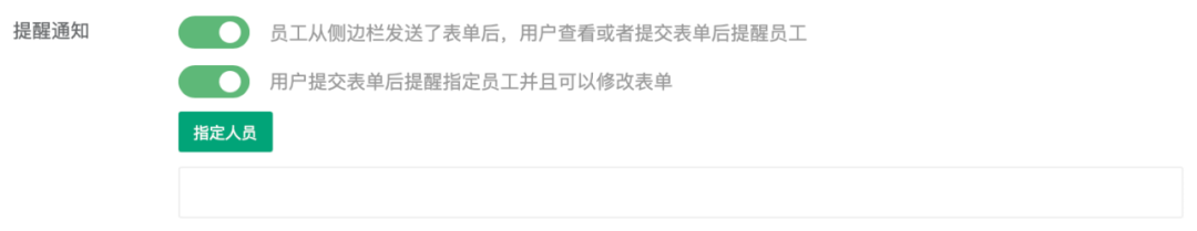 你可提前設(shè)置需要被提醒的員工,在用戶查看或提交表單后,會(huì)自動(dòng)提醒指定員工。