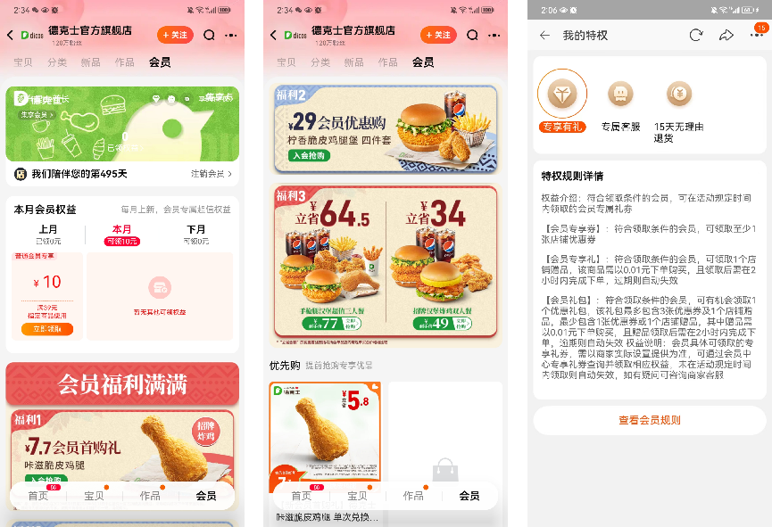 現(xiàn)如今,會員福利已成為品牌吸引用戶進入私域的重要手段。除了針對特定人群的付費會員外,德克士也有自己的基礎會員。