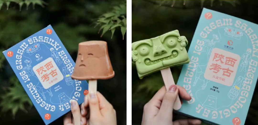 以陜西考古博物館的文創(chuàng)雪糕為例,呆萌的表情,略顯粗糙的做工。乍一看,還以為一個(gè)有眼鼻嘴的花瓶。仔細(xì)一看,才知道這是鏤空人面覆盆形器。