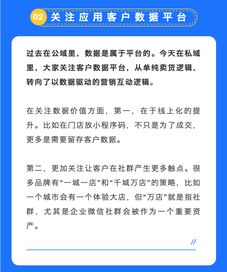 私域運營小課堂-零售行業(yè)如何做私域。真正私域做得好的品牌,長期來看,還是比較關(guān)注數(shù)據(jù)價值,用數(shù)據(jù)驅(qū)動營銷?;旧现灰怯蟹?wù)需求的行業(yè)都適合做私域,比如餐飲業(yè)。只要在公域平臺上成交特別高的行業(yè),基本都有轉(zhuǎn)私域運營的需求。