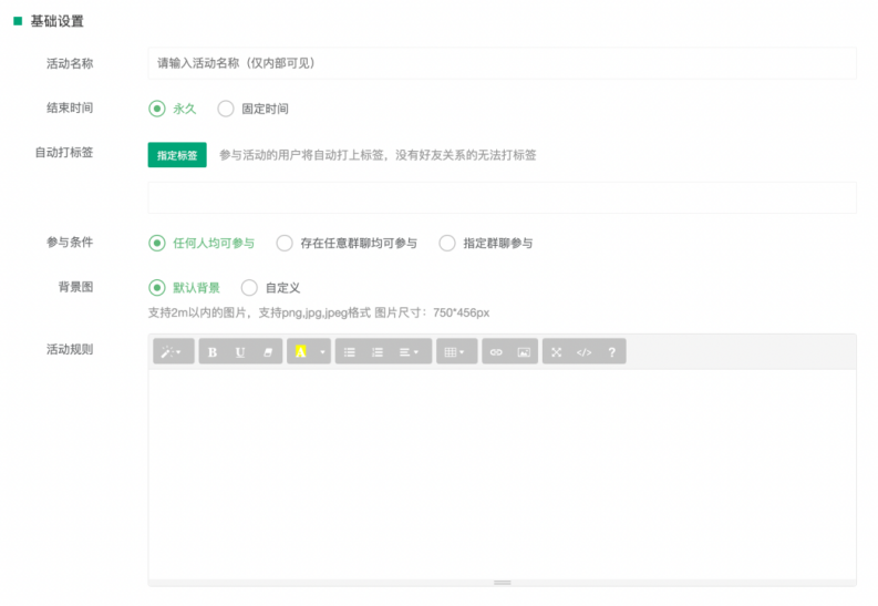 管理員可以自創(chuàng)打卡活動名稱,便于內(nèi)部活動管理;自定義設(shè)置活動結(jié)束時間并自動將參與活動的已添加好友打上對應(yīng)標(biāo)簽;