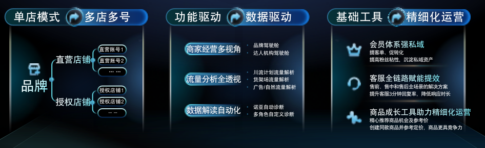 3)經(jīng)營工具的升級:多店多號、數(shù)據(jù)驅動