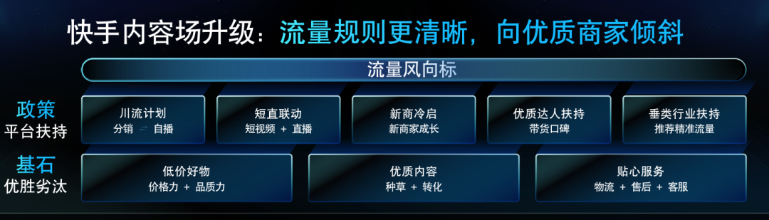首先,快手將流量分發(fā)的規(guī)則做了進一步細化:把「低價好物」、「優(yōu)質內(nèi)容」、「貼心服務」定義為了流量分發(fā)的基石。