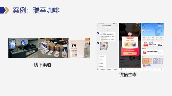 比如像瑞幸咖啡,在幾個高頻訪問的渠道上,都設有入口,比如像線上小程序首頁、優(yōu)惠券頁面、下單頁面,線下門店KT版展示、海報、產品包裝等等,另外在幾個大的公域平臺上也都有布局。也正因為有這樣足夠廣的用戶觸點設置,所以它的引流效果是非常不錯的!