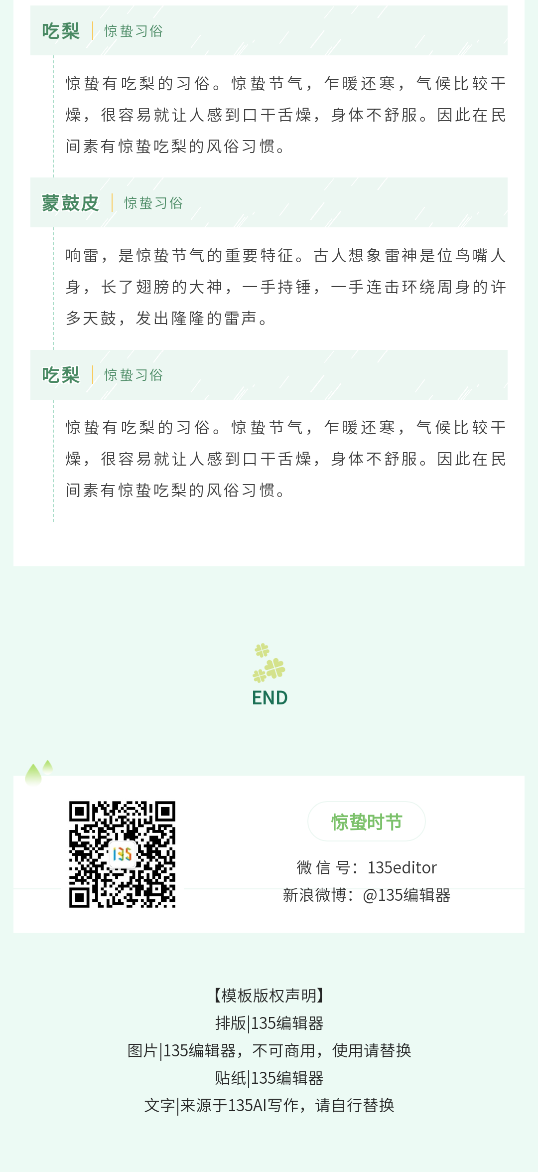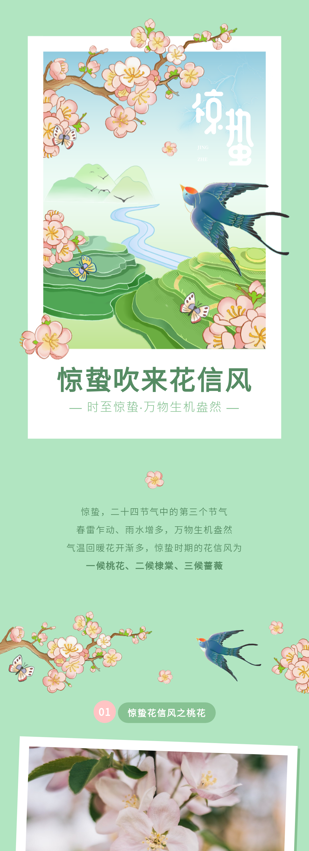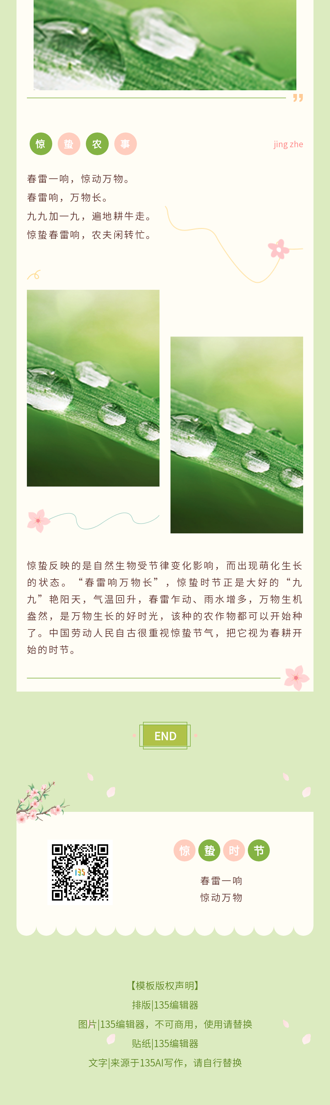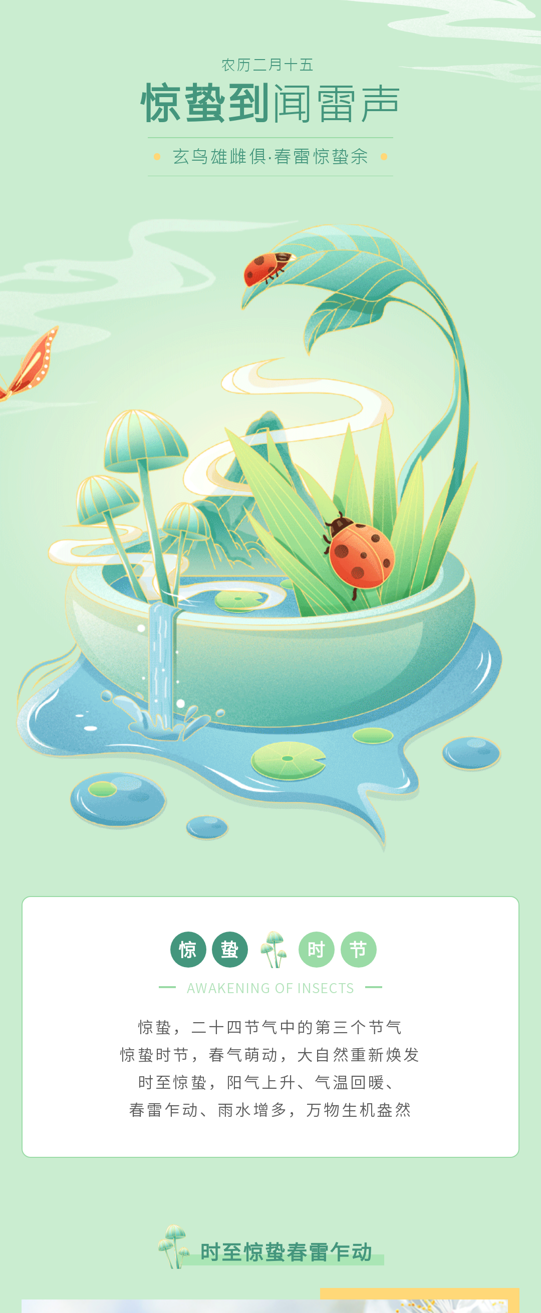 2024年3月5日驚蟄將至,萬物復蘇。在比格設計和135編輯器,你可找到精美驚蟄海報和模板,輕松打造個性化圖文。驚蟄是仲春時節(jié),春雷初響,萬物復蘇,寓意生命力和希望。