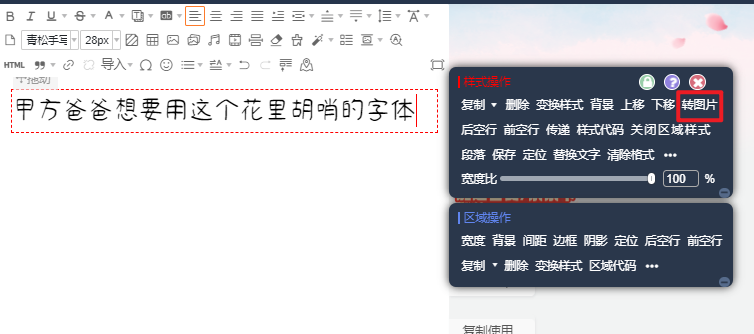我們換個(gè)思路,把可編輯的文本內(nèi)容轉(zhuǎn)化成圖片,這樣就能滿足你甲方的需求了。