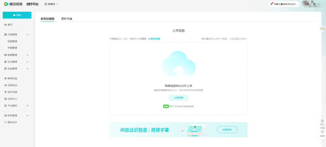需要申請(qǐng)騰訊視頻創(chuàng)作者