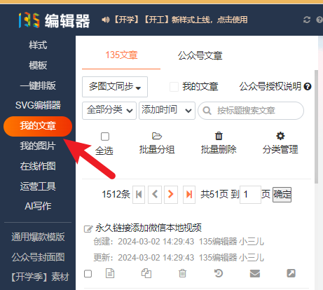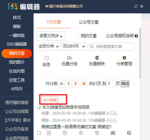 等待一段時(shí)間,審核通過(guò)后我們?cè)龠M(jìn)入【我的文章】就能看到左上角有【永久鏈接】的小標(biāo)