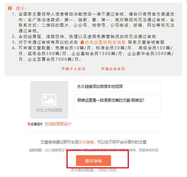 好問(wèn)題,135編輯器接入了騰訊視頻我們可以把視頻素材上傳至騰訊視頻中,然后插入到135編輯器內(nèi),這樣生成永久鏈接就能看到視頻內(nèi)容了。