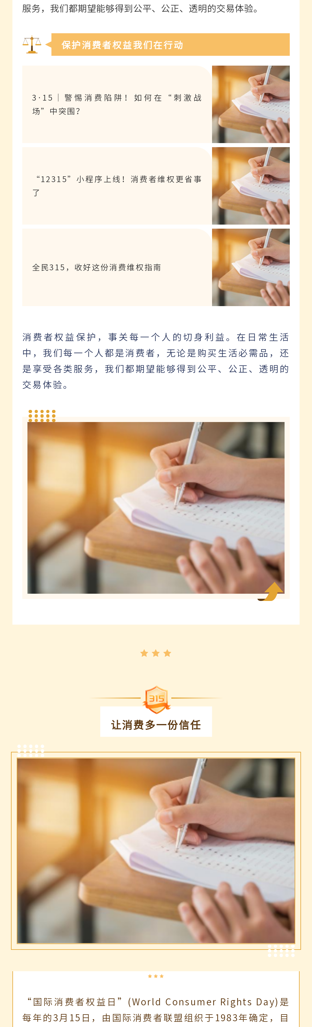 315消費(fèi)者權(quán)益日是消費(fèi)者了解自身權(quán)益、維護(hù)自身權(quán)益的重要日子。消費(fèi)者應(yīng)該積極行使自己的權(quán)益,同時(shí)也需要注意保護(hù)自己的權(quán)益,避免受到侵害。