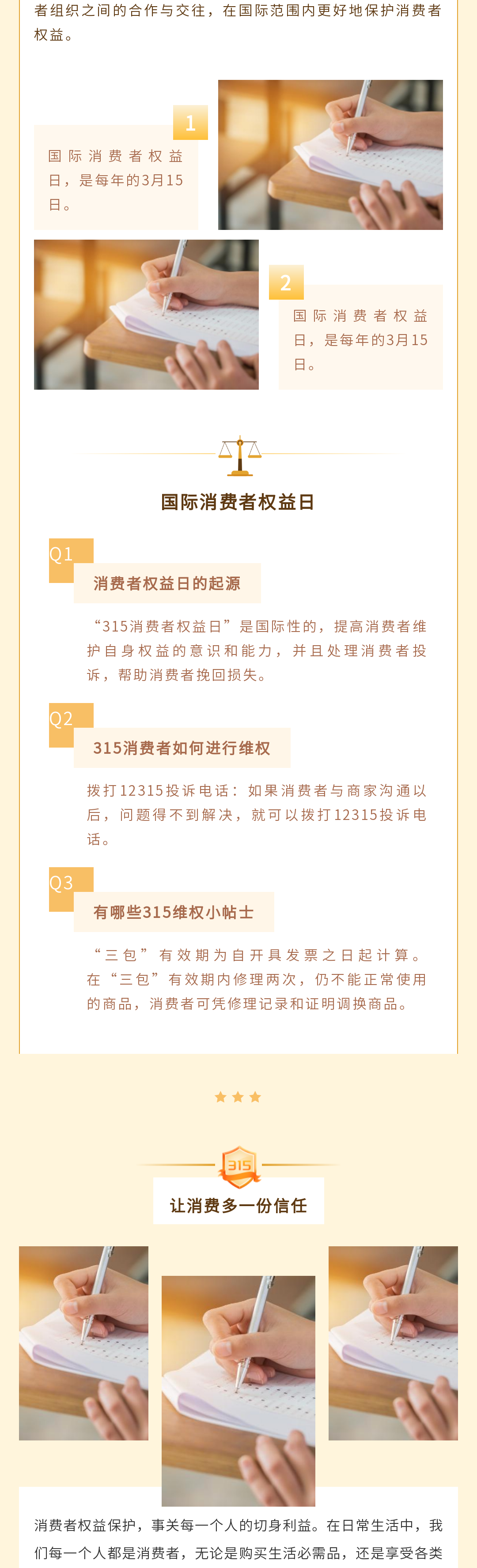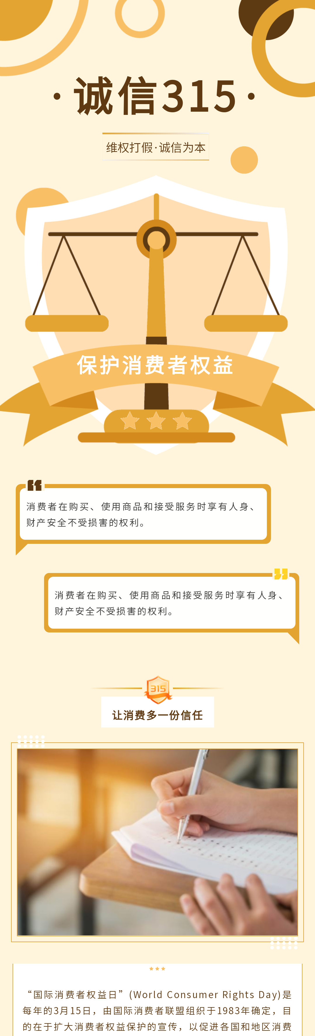 315消費(fèi)者權(quán)益日是每年的3月15日,由國(guó)際消費(fèi)者聯(lián)盟組織于1983年確定,目的在于擴(kuò)大消費(fèi)者權(quán)益保護(hù)的宣傳,使之在世界范圍內(nèi)得到重視,以促進(jìn)各國(guó)和地區(qū)消費(fèi)者組織之間的合作與交往。