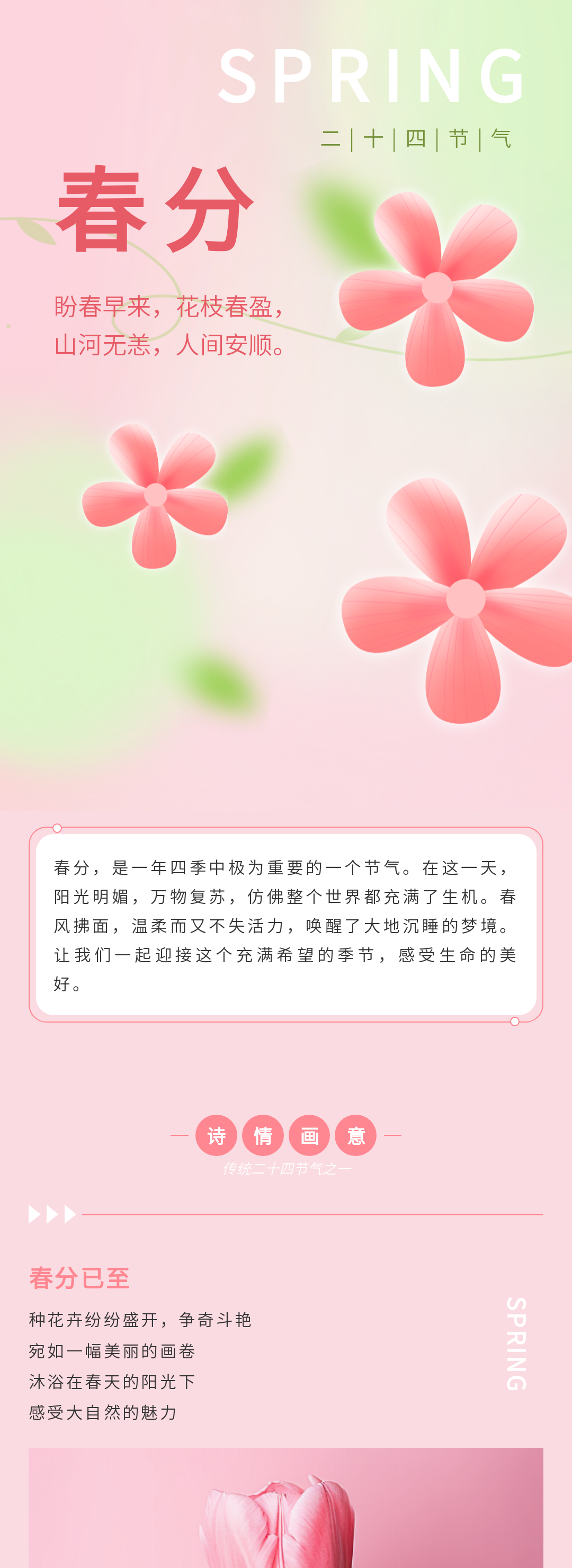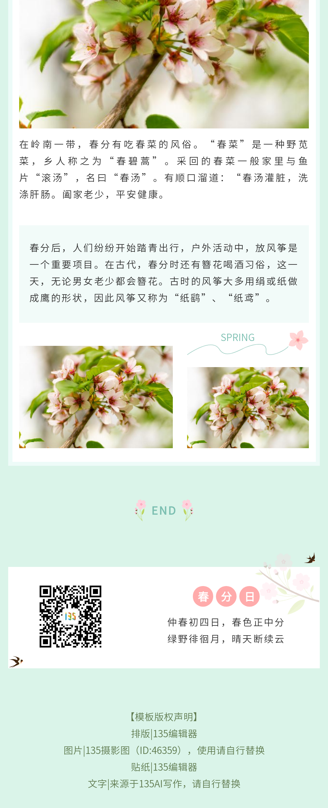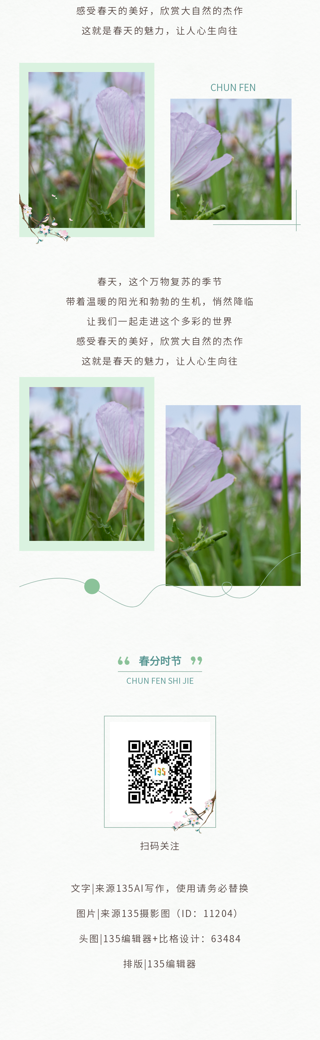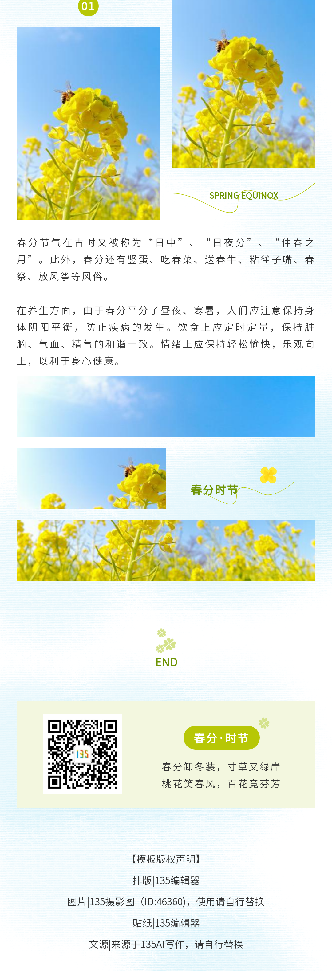 春分公眾號推文素材精選,涵蓋精美海報模板、創(chuàng)意標題樣式及文案。135編輯器提供豐富素材,助力打造生動春分內容。萬物舒展,春意盎然,快來挑選你的春分素材,展現(xiàn)春日美好!