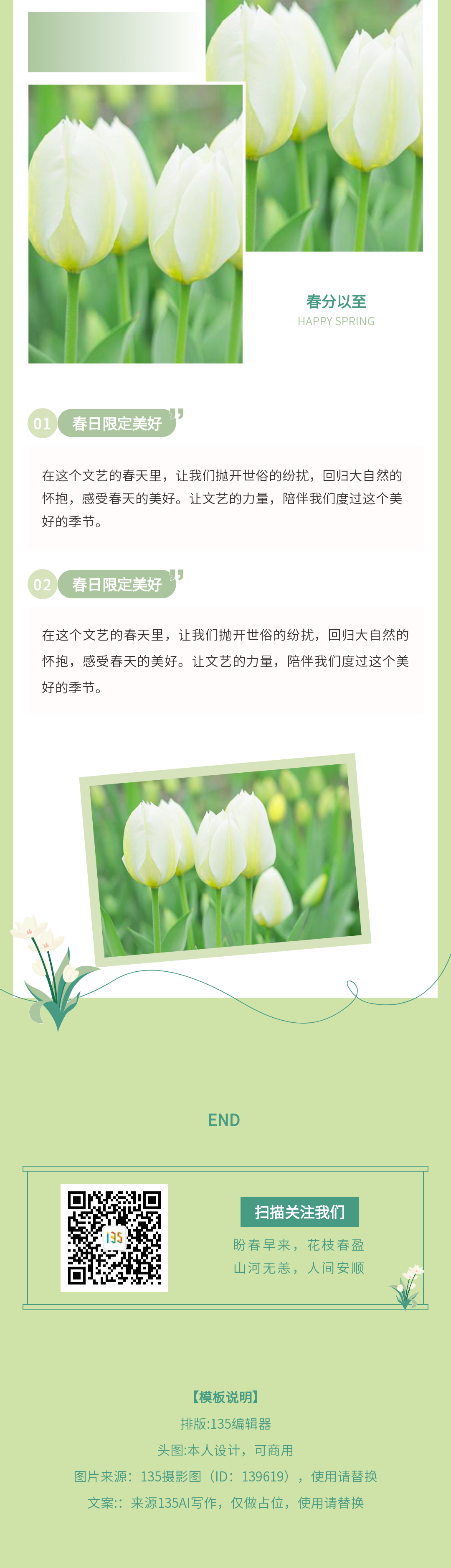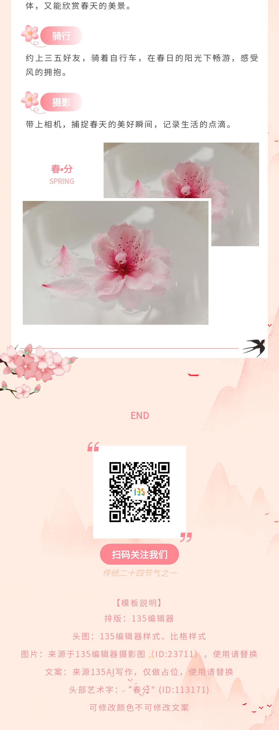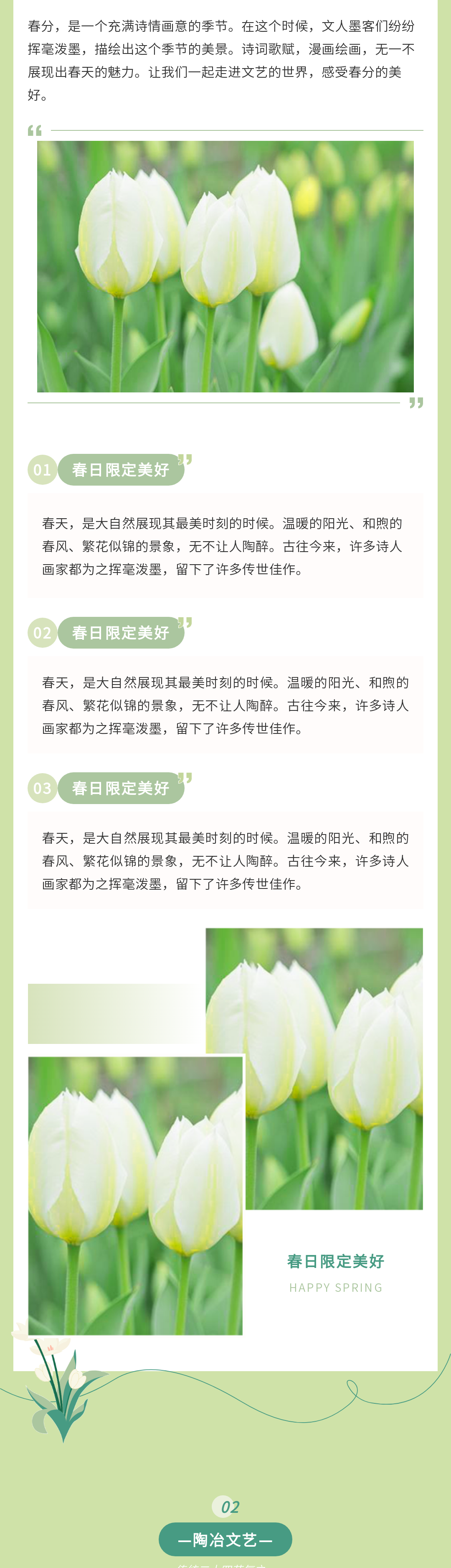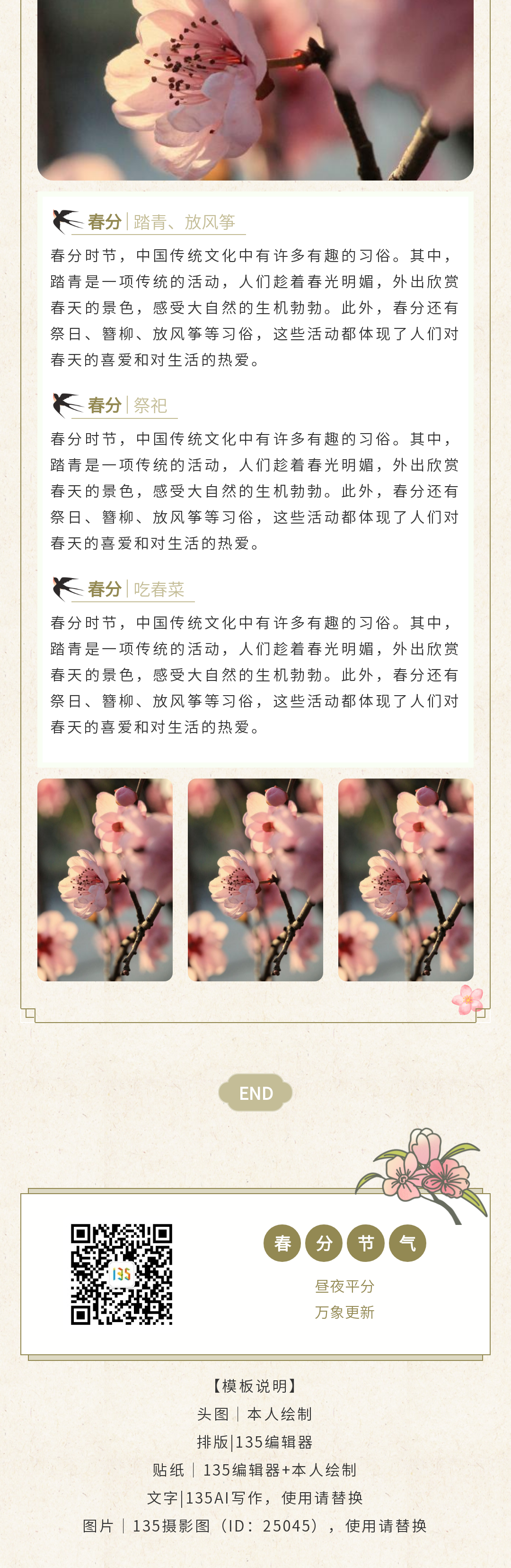 春分公眾號推文素材精選,涵蓋精美海報模板、創(chuàng)意標題樣式及文案。135編輯器提供豐富素材,助力打造生動春分內容。萬物舒展,春意盎然,快來挑選你的春分素材,展現(xiàn)春日美好!