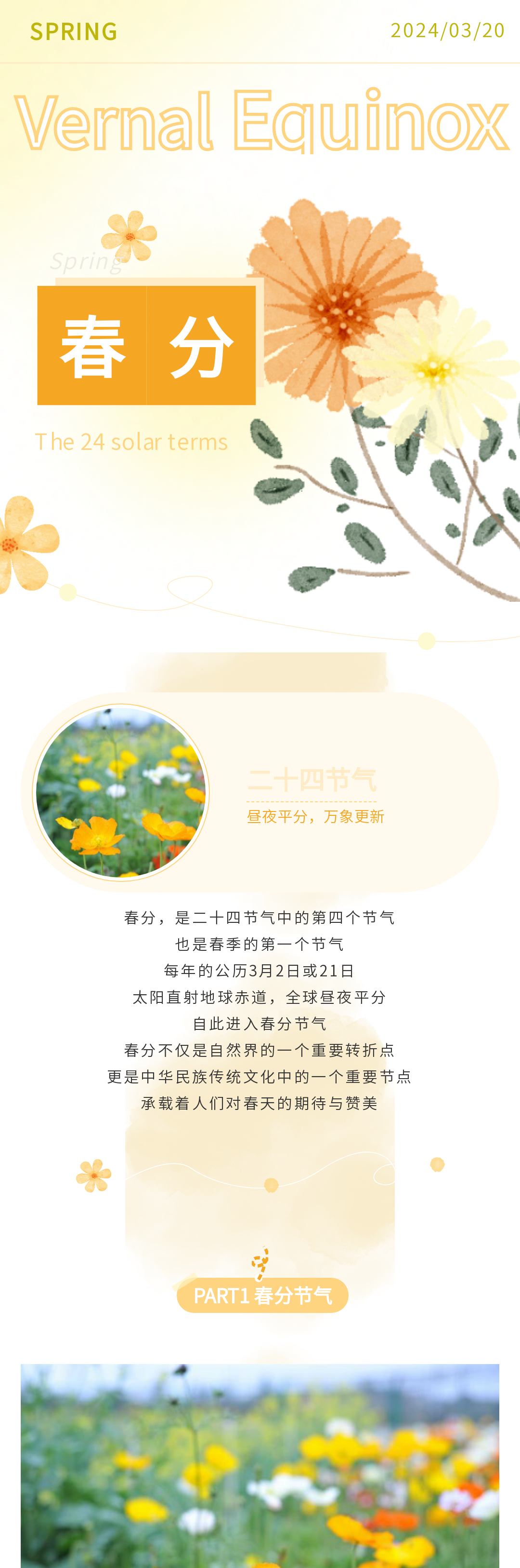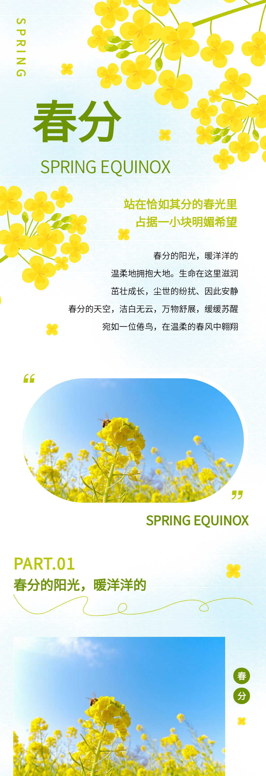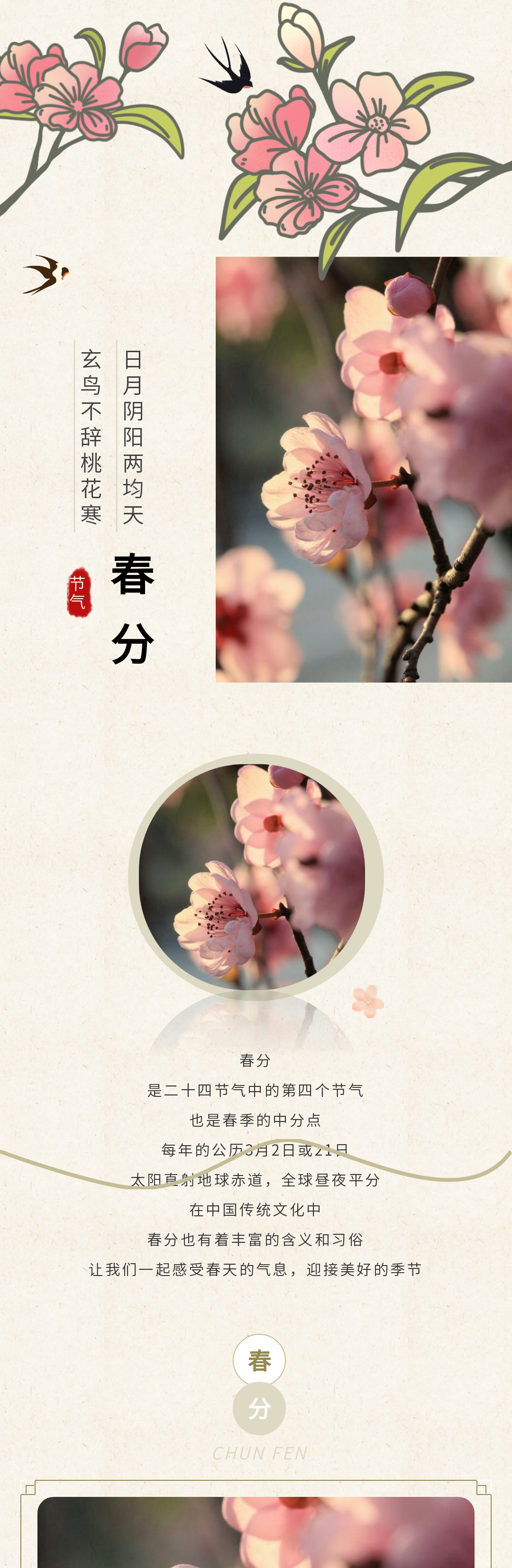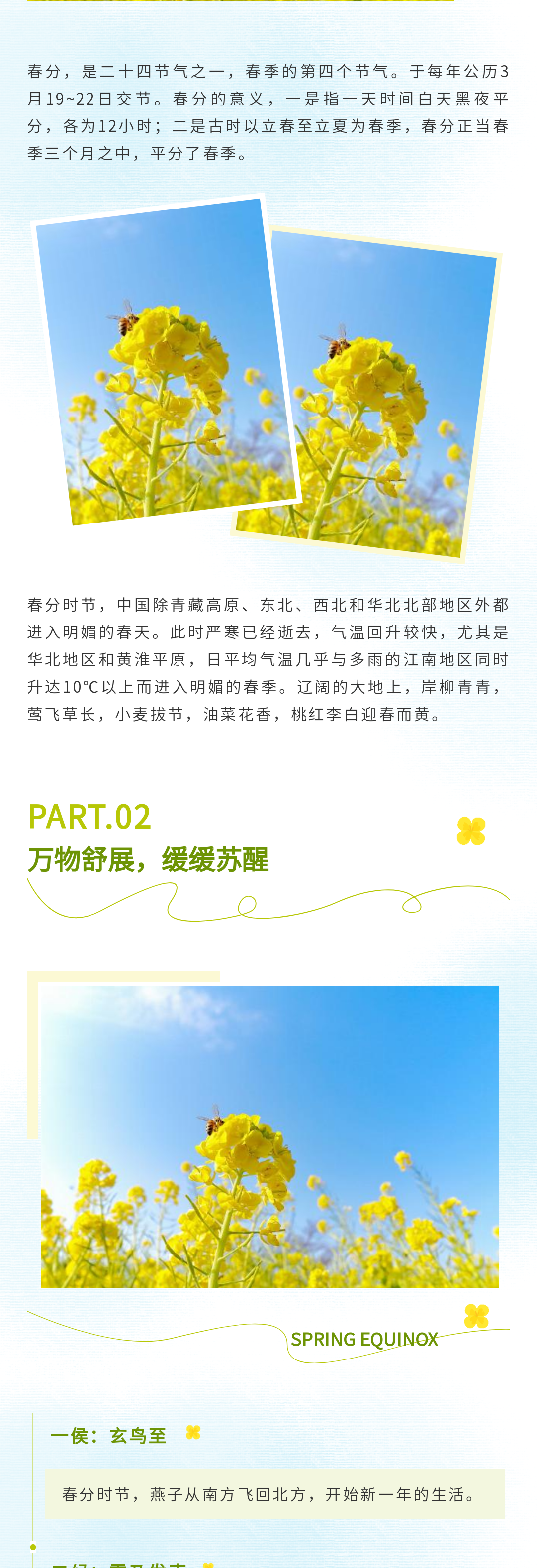 春分,那個悄然而至的節(jié)氣,宛如一位輕盈的舞者,用她的腳步在大地之上描繪出一幅生機盎然的畫卷。此時,萬物蘇醒,大地回春,一切都顯得那么新鮮、那么美好。