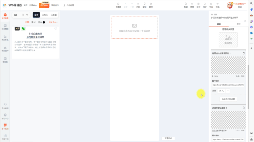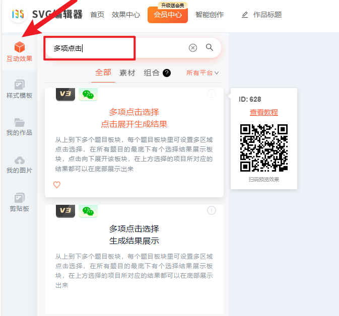點擊進入SVG編輯器選中【互動效果】后在搜索框中輸入【多項點擊選擇】或是輸入組件ID