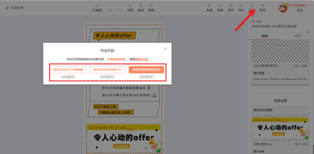 在完成所有內(nèi)容編輯后就可以選擇導(dǎo)出到編輯器或是微信公眾號后臺了。