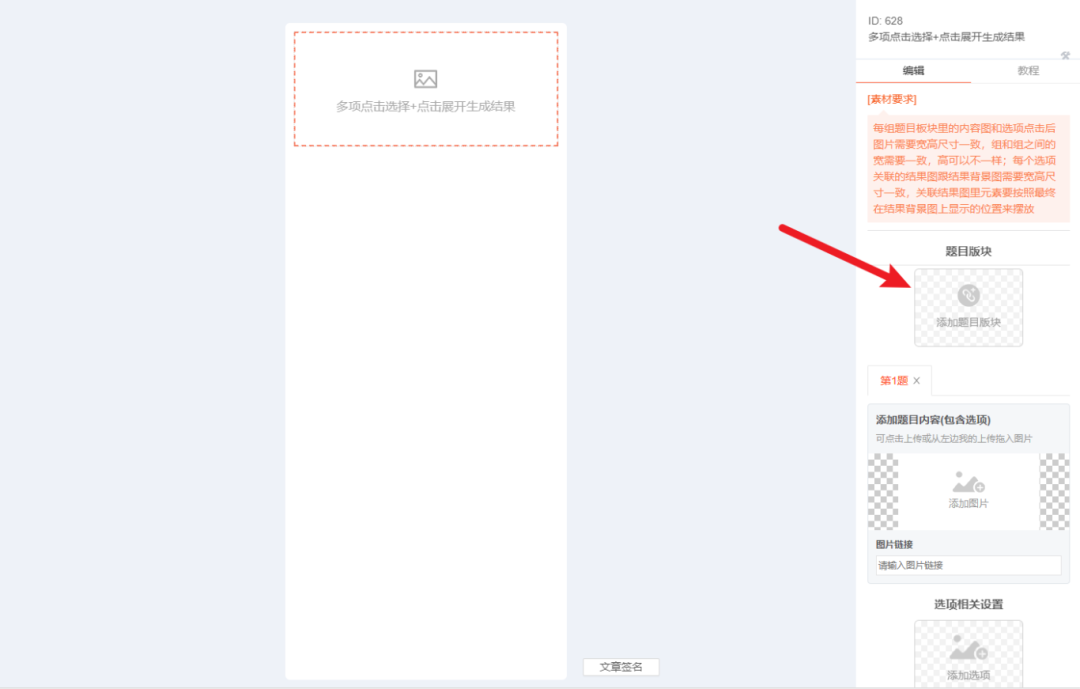 點擊組件進入編輯頁面,這個時候咱們先別著急上傳素材,先看看素材要求再上傳。